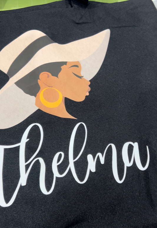 Black Woman Tan Hat Large Tote Bag